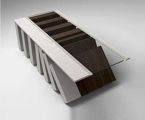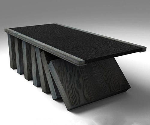 这款看起来很有趣的多米诺骨牌桌设计,是由一个名为SIDD的小设计团队手工打造,据称每一块桌子都是独一无二的,购买者可以根据需要与爱好进行定制,其桌腿如同定格在倒塌时一瞬间的多米诺骨牌,富有心思与想象力。