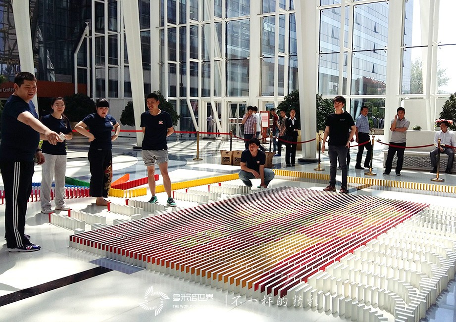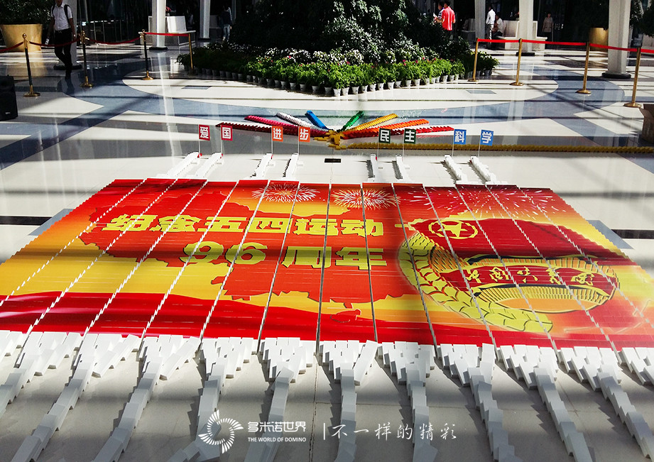2015年的“五四”青年节,多米诺世界的伙伴与金隅嘉华的各位团员们一起用一场别开生面的多米诺骨牌秀弘扬 “爱国、进步、民主、科学”的五四精神,用自己的认真、努力、坚持和信念作为青年人的宣言,用骨牌描绘出一幅幅精美的画面,用实际行动传承金隅的文化。