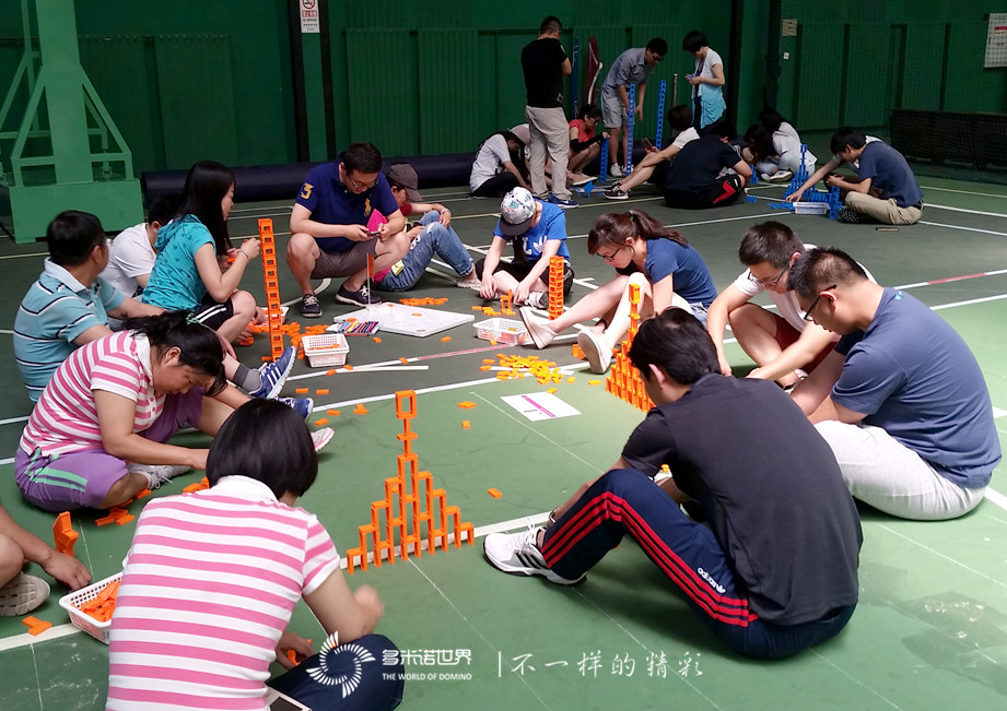 活动开始,现场的60余名队员被分成了红、橙、黄、蓝四支队伍。为了让大家通过一天的时间能够更多的了解、体会多米诺运动,并能够有所感悟,多米诺世界的老师除了设计了常规的团体任务外,特别设计了多米诺竞技大挑战项目,通过经典的多米诺游戏,让队员们以最快的速度全身心的投入到活动中。通过30分钟的练习,所有队员都完全沉浸在多米诺的世界中,并期待着比赛时能够代表本队参赛。比赛过程更是一波三折,三轮比赛过程,第一轮垫底的队伍成为了最终的获胜队,让人在感叹事事无常的同时,也更加明白了机遇是留给有准备的人。