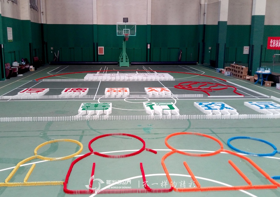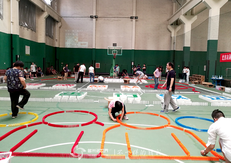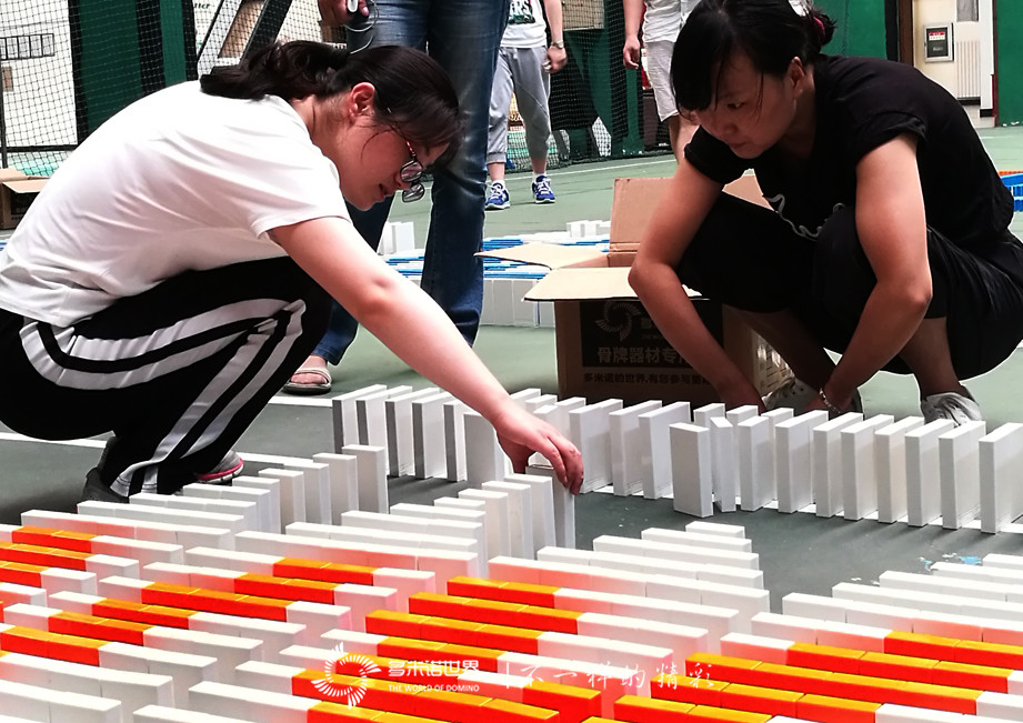 队员们在各自队长的带领下,认真码放着每一枚多米诺骨牌,不惧失败,不畏困难,虽然现场时有意外倒牌发生,却没有打倒队员们的自信,在所有队员的共同努力下,所有骨牌被成功码放。