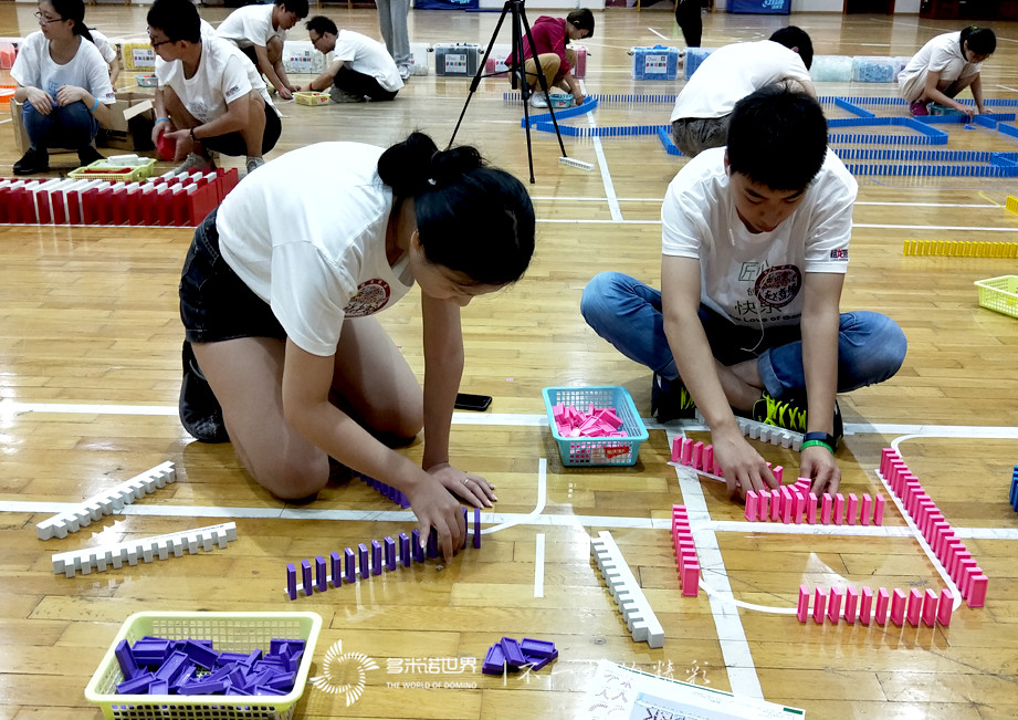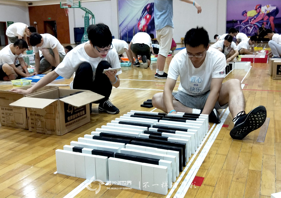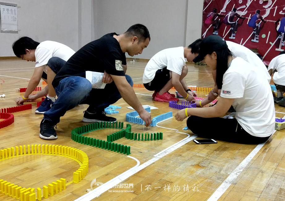 多米诺讲师耐心的讲解了活动的规则和码放技术,队员们便信心满满的进入状态。队员们从开始码放骨牌时的跃跃欲试,到沉下心来的静气凝神,开始变得内敛、沉稳;而面对一次次的意外倒牌,也从一开始的沮丧、无奈,直至不惧失败、斗志昂扬。