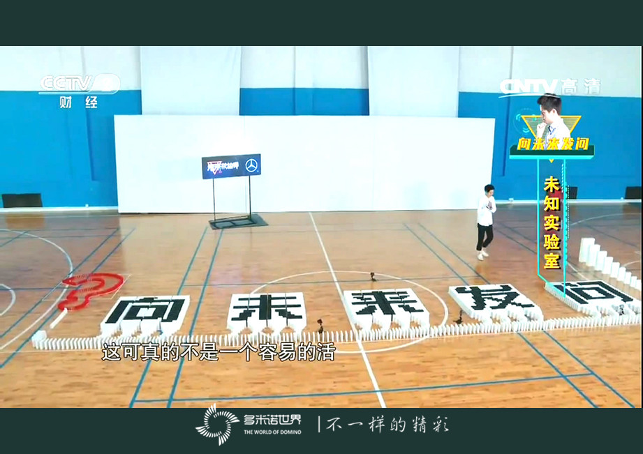 节目每期以一个主题词作为核心线索,嘉宾围绕主题词分享关于未来探索与展望的话题与观点。在未知实验室版块,90后发明家、天才少年薛来,作为科学实验员,用不同大小的多米诺骨牌完成了一个实验。实验由5厘米高的小骨牌开始启动,呈现“向未来发问”文字后,最终触及50厘米高的大骨牌。通过实验,薛来告诉大家,每个人所做的每一件事都会像骨牌一样一环一环的传递下去,会形成巨大的能量,要创造人类美好的未来世界,需要每一个人的努力。