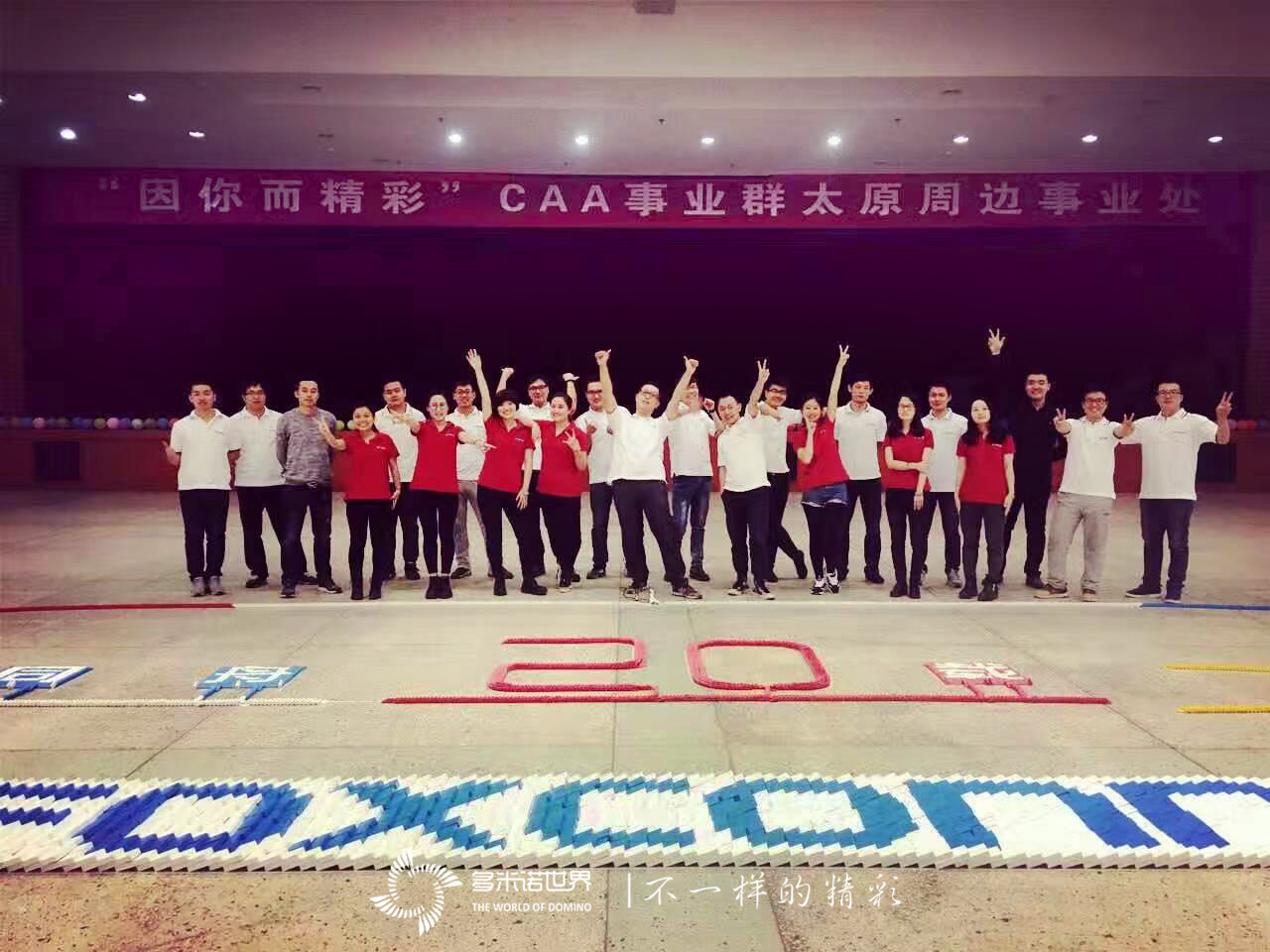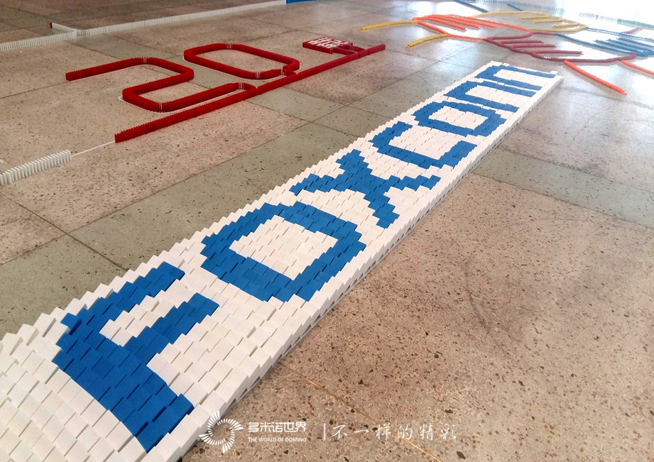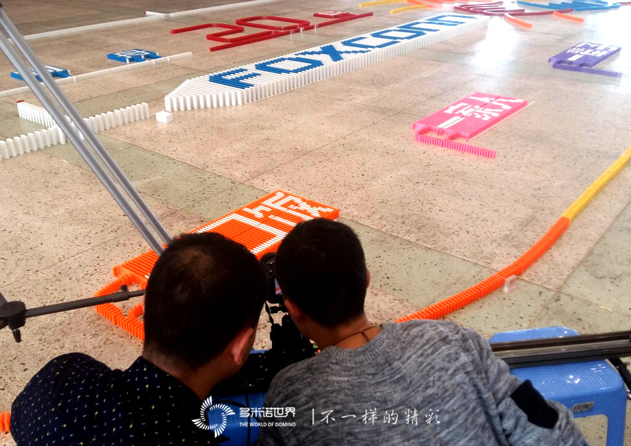 2016年11月27日,富士康CAA事业群太原周边事业处,拍摄了一部“因你而精彩”为主题的视频,多米诺骨牌再次成为视频主角,多米诺世界团队设计的骨牌画面,展现了携手同行、“风雨同舟”的“20载”,用“一口饭”、“一家人”、“一辈子”的朴实语言,讲述了同行二十载的深情厚意。