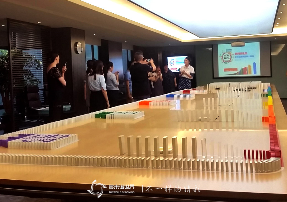 繁忙的工作中,也不乏有小惊喜,2016年7月20日,腾讯-新闻资讯部邀请多米诺世界团队组织的“桌上多米诺大挑战”,给忙碌中的伙伴们带来无限惊喜和欢乐,舒缓了工作中的压力,同时增进了同事之间的友谊。