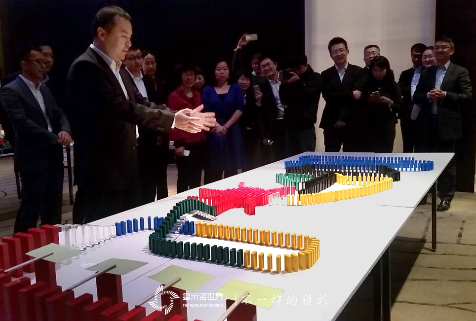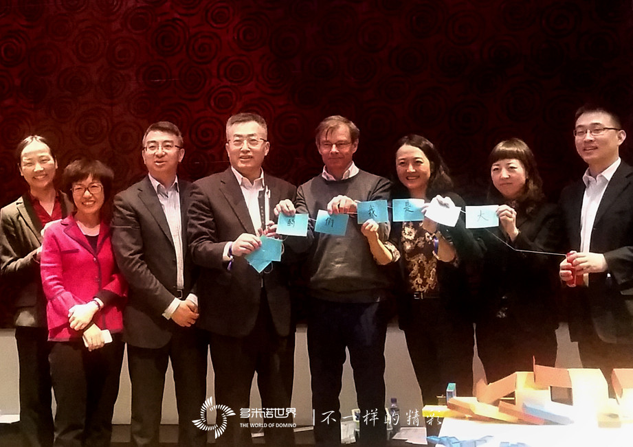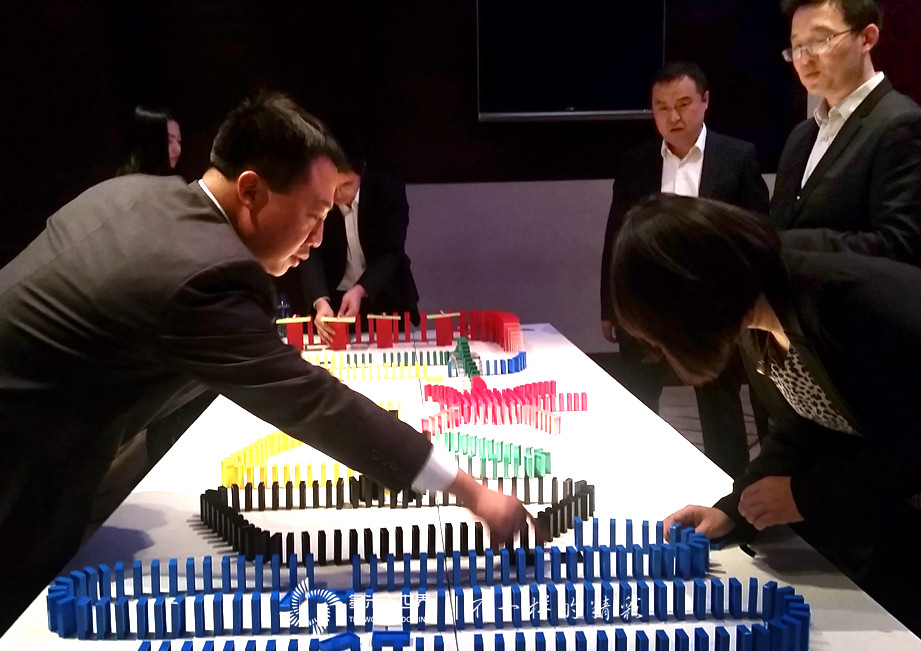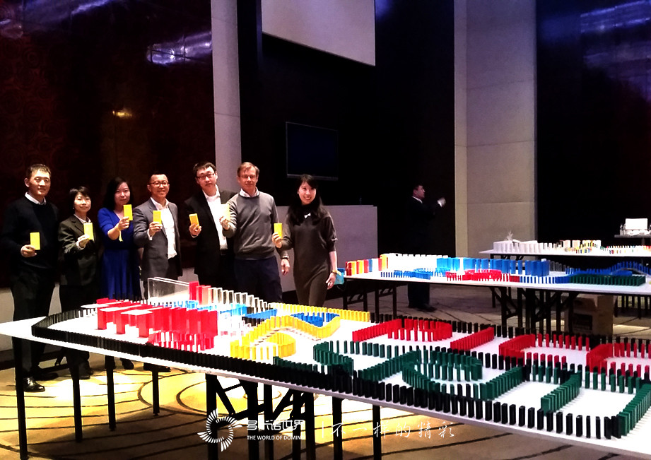 仪式过后,大家聚在一起进行了一场别开生面,激烈有趣的多米诺创意大比拼。在短短90分钟里,大家分为4个小组,用多米诺骨牌和精巧的机关装置,勾画着双方合作的美好愿景,一幅幅富有创意和寓意的画面在队员们精心的设计和码放中一一呈现。