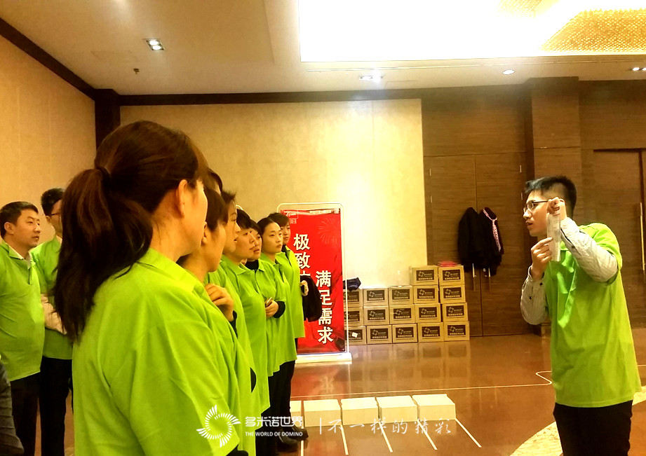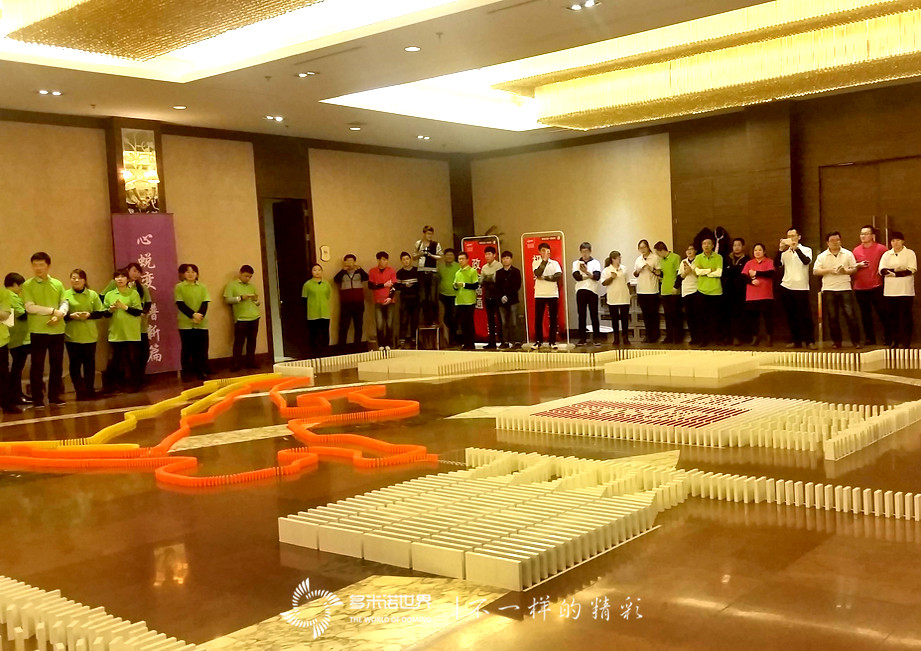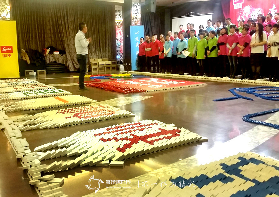 多米诺团队大挑战由济南国美的108名精英共同完成,在经历了组建团队、技术培训后,进入骨牌码放阶段。