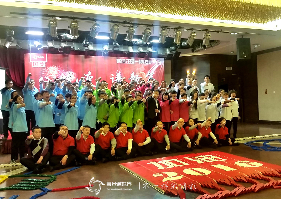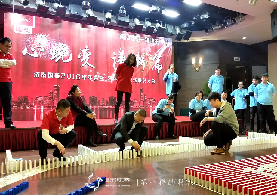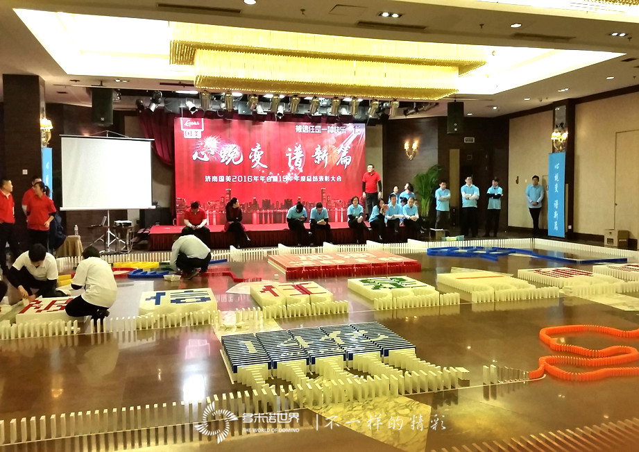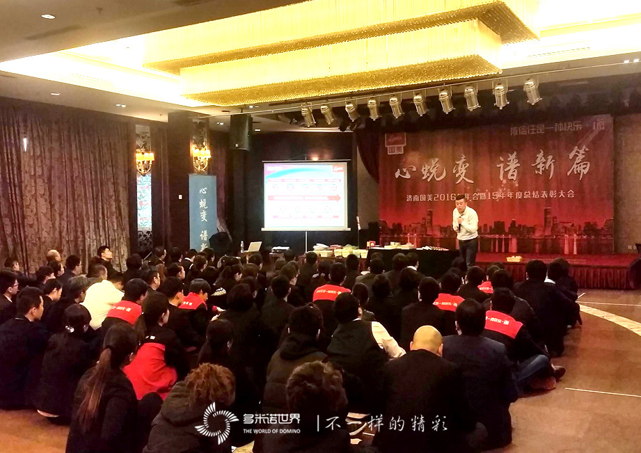 2016年1月27日,济南国美诚邀多米诺世界团队,在以2016年会上,组织了一场以“心蜕变、谱新篇”为主题的多米诺团队大挑战。