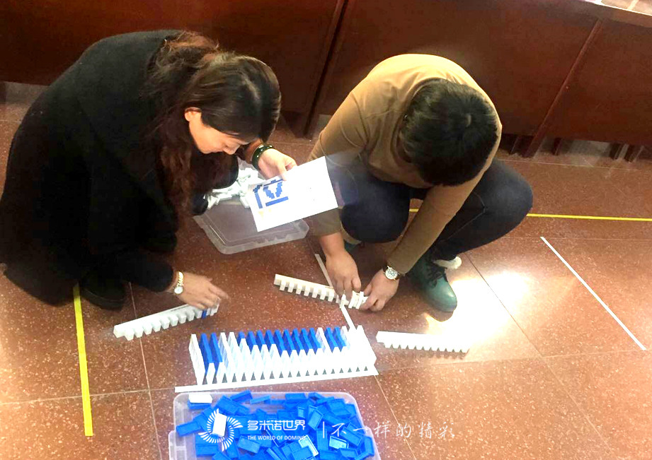 多米诺骨牌运动是一项集文化内涵与科技创新于一体的运动项目。对青少年科技创新能力的培养,科学思维和动手实操能力的锻炼有着积极地作用。2016年的新年,多米诺骨牌运动悄然走进校园,开启校园文化的新亮点,用小小的骨牌启迪同学们的想象力和智慧, 丰富同学们的课余文化生活。