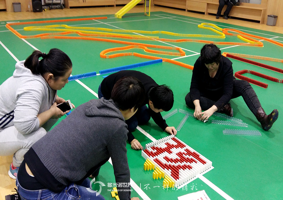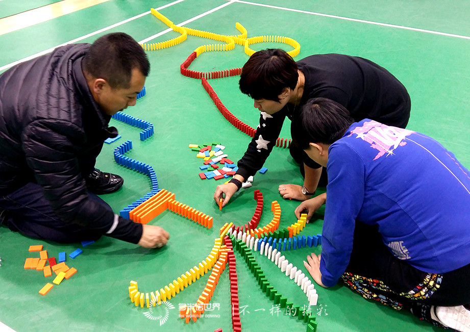 所有队员在各自队长的带领下,进入本队的摆牌区域,细分每人的任务后正式开始骨牌摆放。不多时间,骨牌雨后春笋般铺在了地面上,而与此同时,意外倒牌也增多起来。