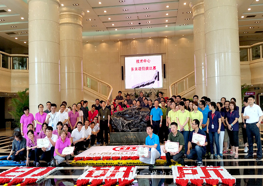 2015年5月29日,中国印钞造币公司技术中心的员工聚集在办公楼大厅,在多米诺世界团队专业老师的指导下,经历了一次难忘的多米诺大挑战。