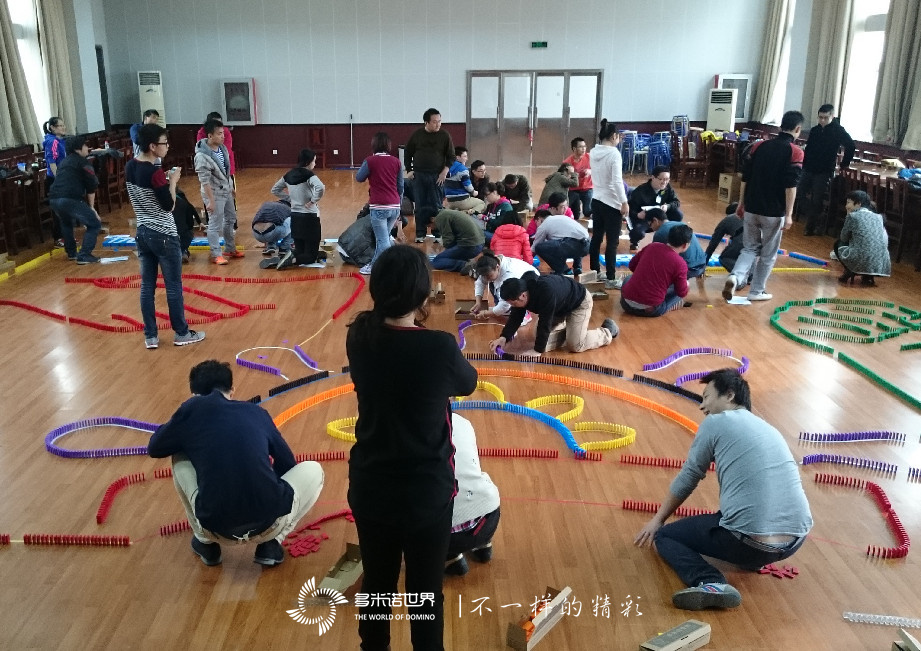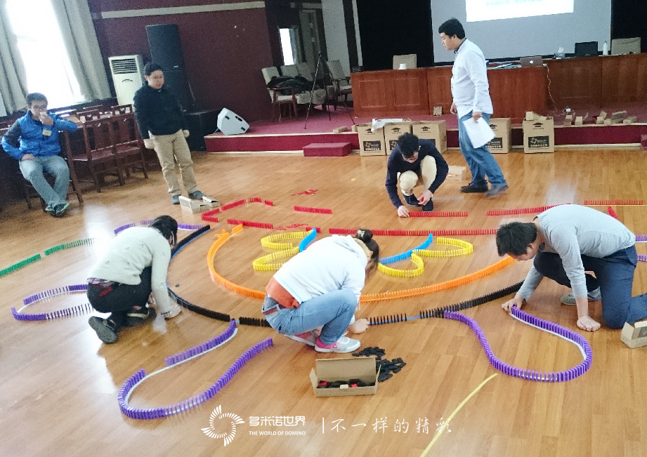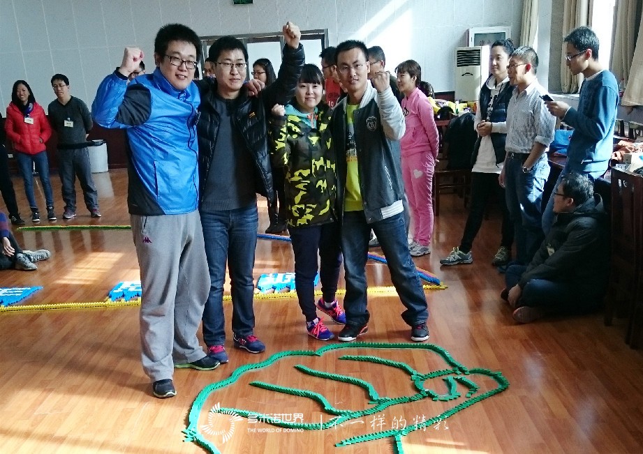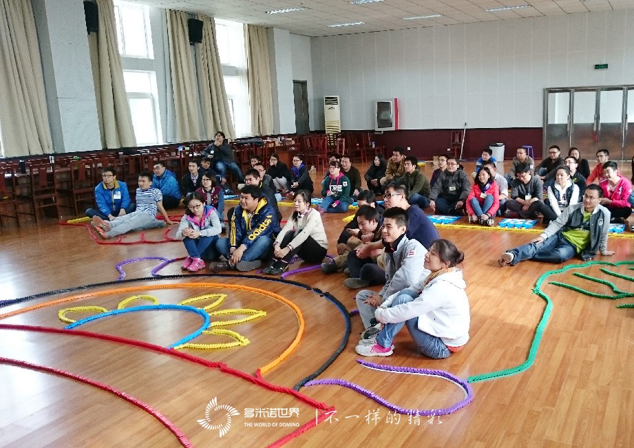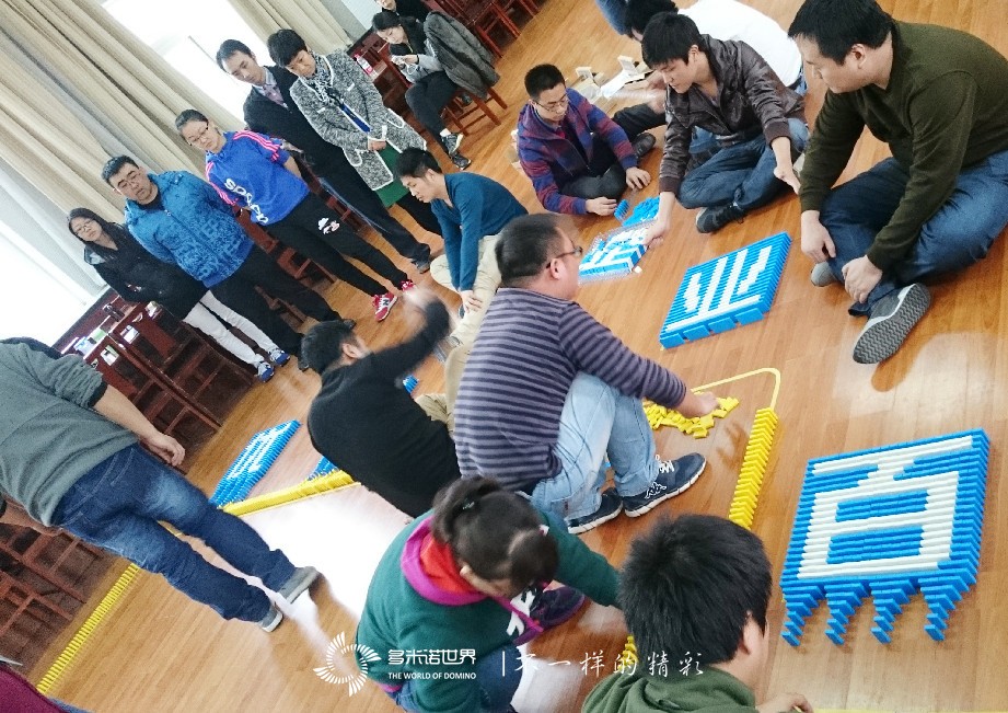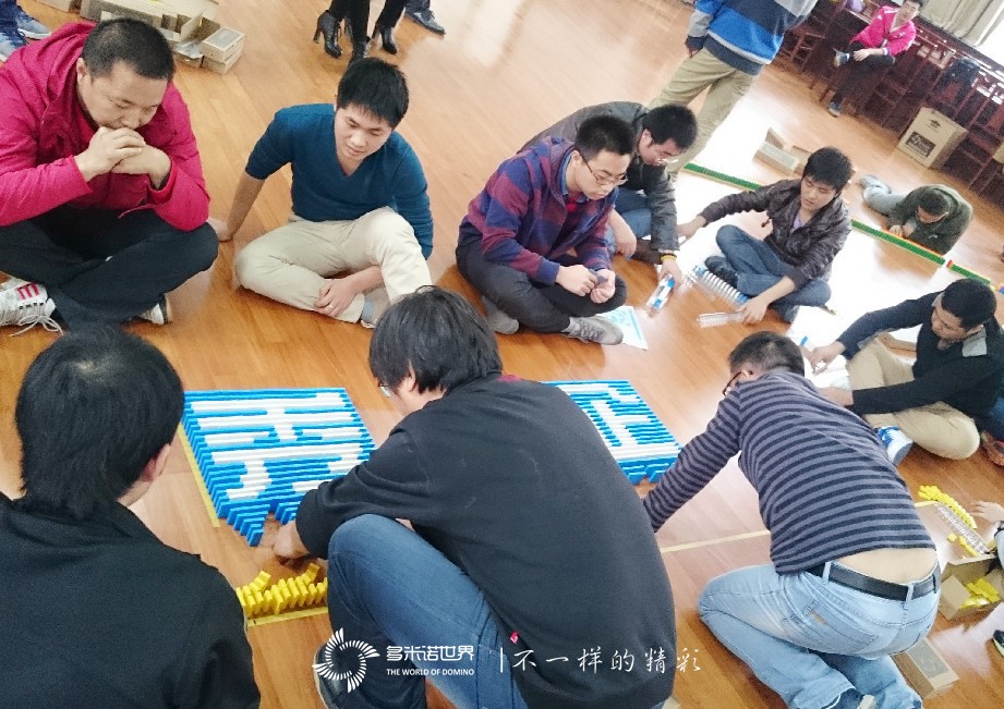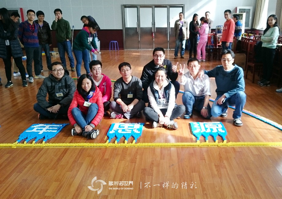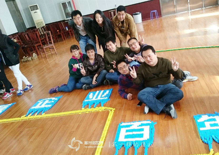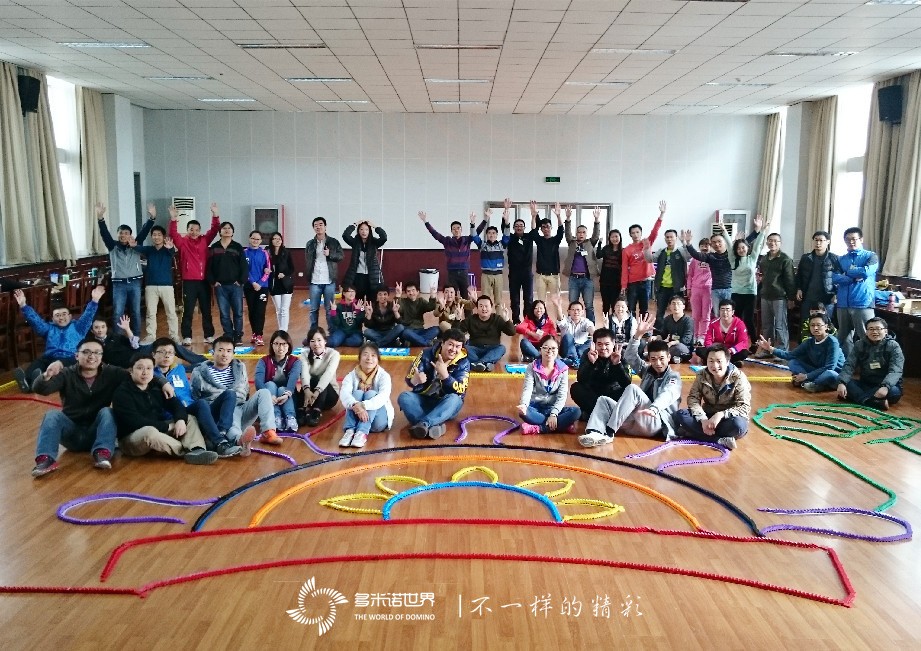 2014年11月1日,位于北京市大兴区预备军训练基地里,来自思源的50余名员工开展了一场丰富多彩的多米诺体验课。早上9时许,队员们着装整齐来到会议室里,认真听来自多米诺世界的专业讲师来讲解多米诺骨牌的运动规则后,由各组组长带领来到指定任务区域来完成本团队的“工作”。尽管各组队员在体验骨牌的过程中,屡屡接受骨牌意外倒下的“惊喜”,但为了留下一个圆满的回忆,一次又一次的恢复,在这个过程中,没有埋怨,没有指责,有的只是大家在一起的团结协作,大家为了同一个目标而共同努力。当骨牌全部成功展现后,欢呼声久久不绝于耳。