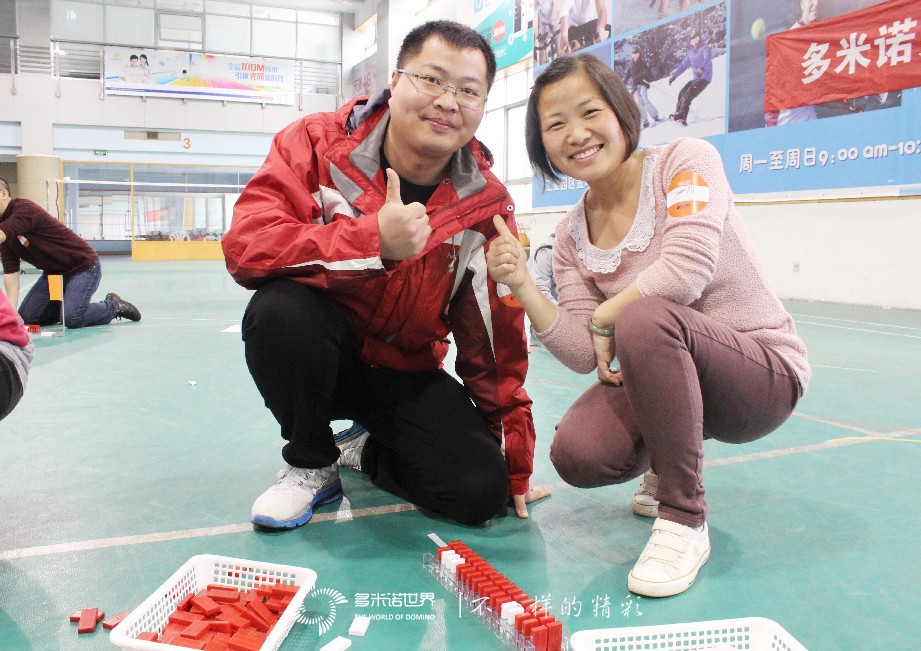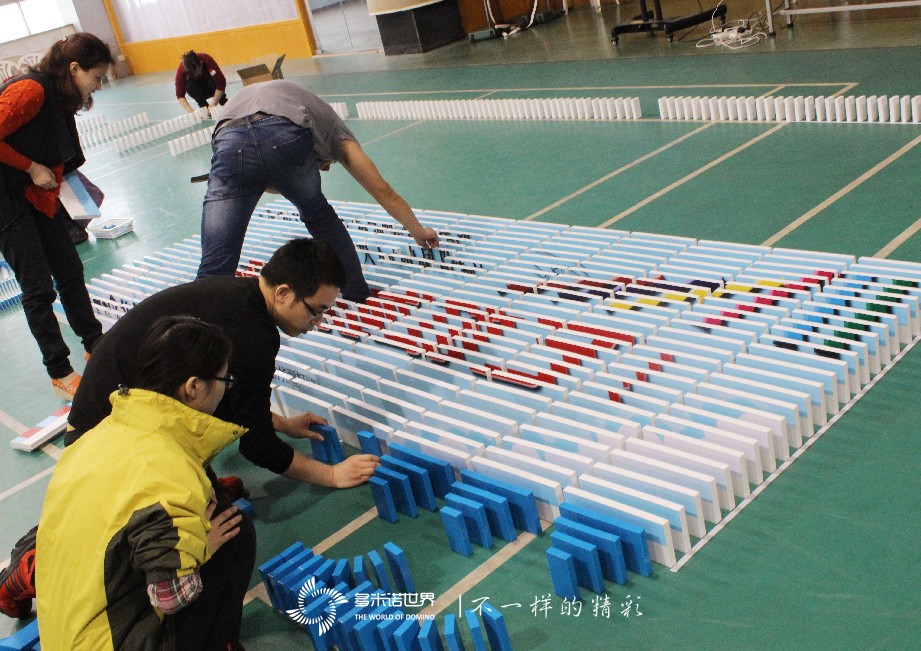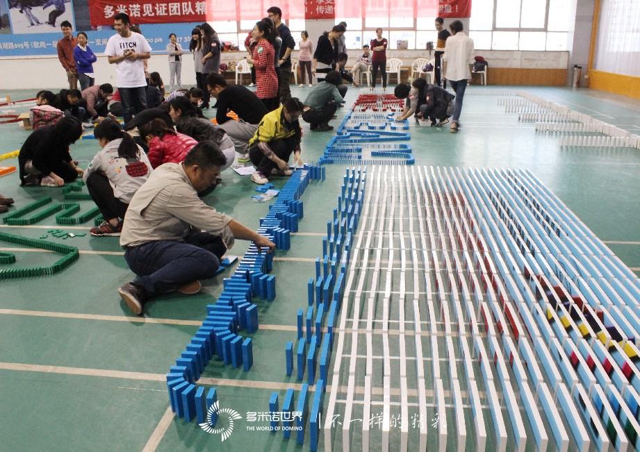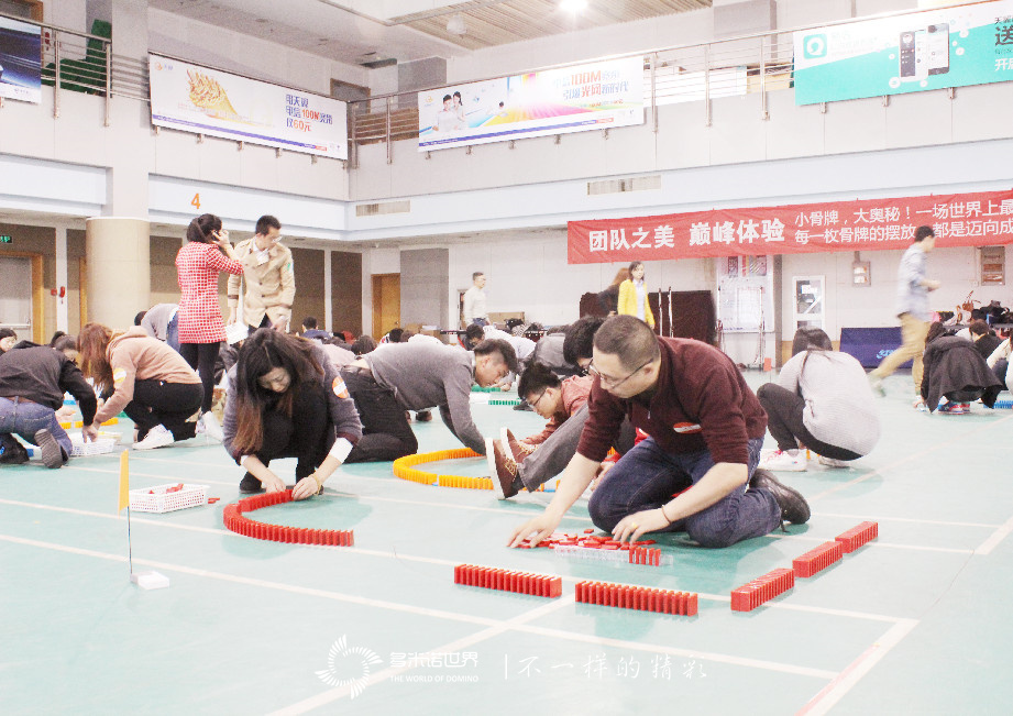 四月三日,由“多米诺骨牌个人吉尼斯世界纪录”创造者马立华女士携多米诺世界团队,邀请来自苏州工业园区55家企事业的80位高管在苏州娄葑文体中心与用多米诺骨牌共同演绎了一场以“One Team One Dream”为团队主题的梦想之旅,旨在用这项蕴含强大团队精神的世界上细心的运动助他们的团队打造一个完美的“冠军团队”。