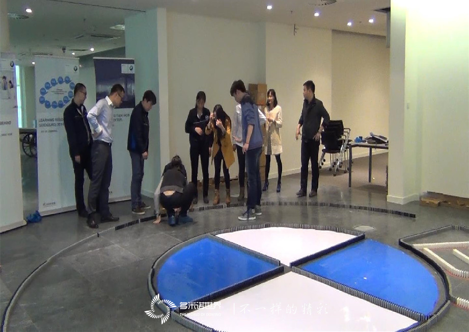 小小的一枚多米诺骨牌,在摆放的全过程中让体验者尝到了其中的“酸甜苦辣”,它不仅考验了一个人的心态,更是提高团队中沟通、协作的不二法宝;从任务开始前的分工,到每人的细心摆放,团队间的断点连接,直到最终完成画面的整体摆放,这一流程,也印证了宝马公司的文化理念“只有每一个人都知道自己的任务,才能目标一致”。