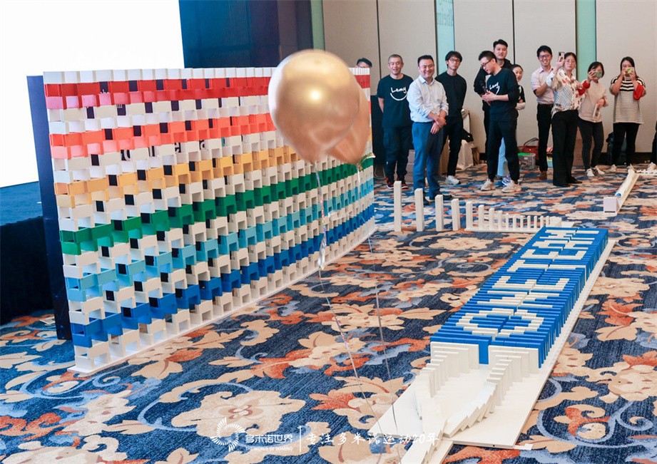 多米诺骨牌呈现的画面内容,诠释了伙伴们在一年之中所取得的突破和成绩,一个个熟悉的画面内容,让大家在搭建多米诺骨牌的同时,不禁回忆起过往每一个努力拼搏的场景。当多米诺骨牌整体画面搭建完成,并完美呈现的时候,每位伙伴都露出会心的微笑,为团队共同协作,完成了很多个从0到1的突破而感动。