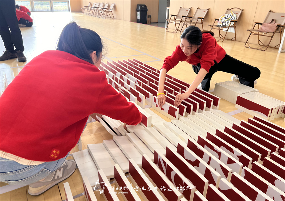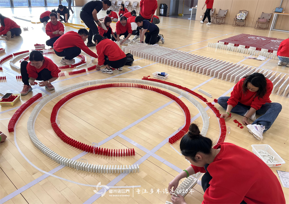 其间大家从了解骨牌的码放技术到小组分工协作完成作品中一幅幅画面的搭建码放,再到每幅多米诺骨牌画面的连接,大家以饱满的热情投入其中,全心的付出,最终赢得骨牌作品百分百的完美呈现,开心愉悦的同时也为这次久违的相聚画上了圆满的句号。