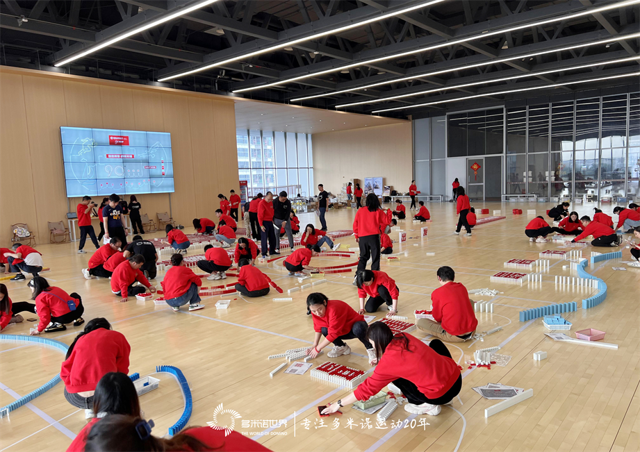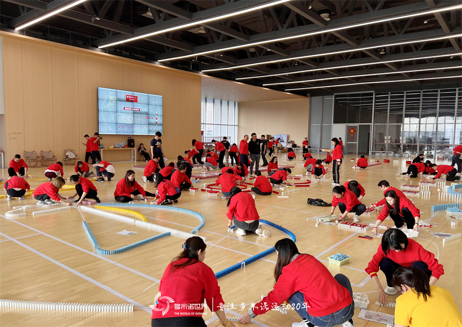 2月的深圳,温暖而舒适,周末的下午,60余位招商永隆银行-深圳分行的伙伴齐聚在体育馆里,在老师的带领下,共同完成了一幅近26000余枚多米诺骨牌组成的作品。