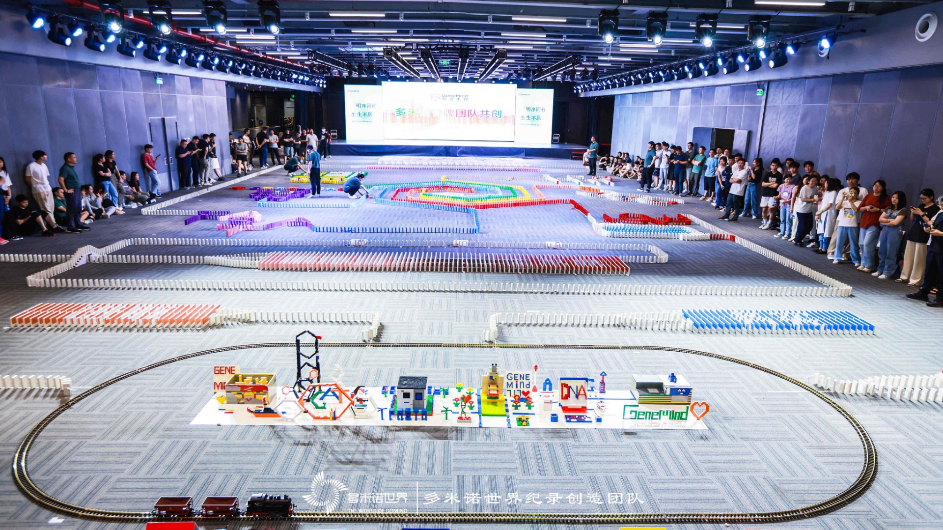 在真迈生物11周年庆活动日中,特别安排了有趣的多米诺共创活动,400余位GeneMinders在多米诺世界老师的带领下,分组合作,共同创造属于真迈生物的多米诺骨牌作品,为司庆日留下难忘而美好的回忆。