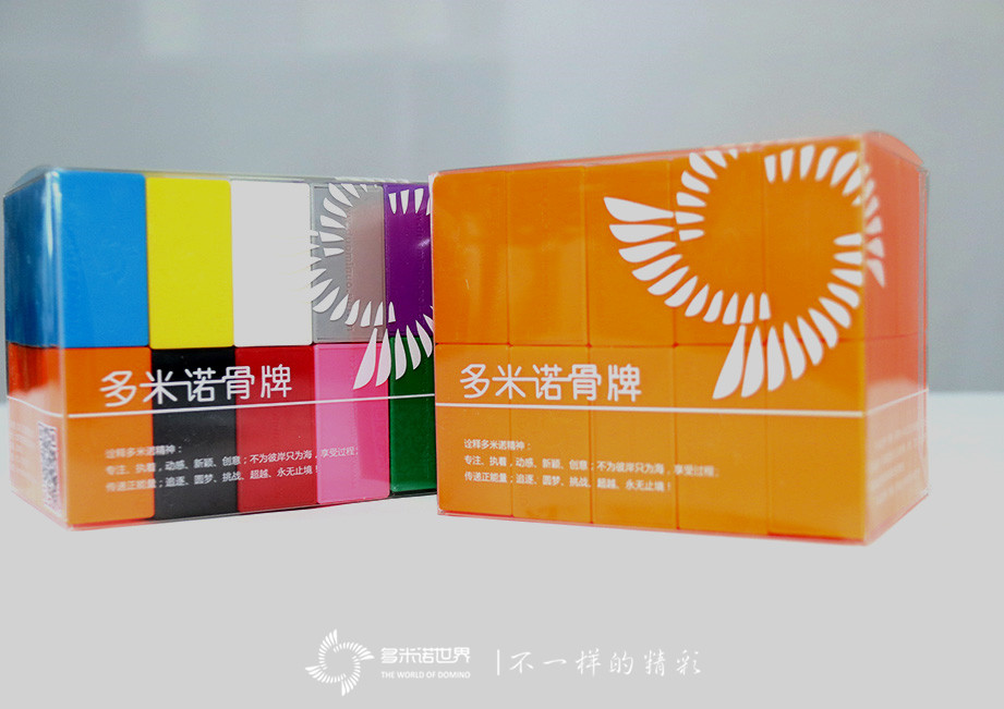 比赛骨牌(型号:D44-K)小巧精致,两面的平面效果,便于骨牌画面处理,达到理想的图案效果;有“红、橙、黄、绿、蓝、紫、粉、黑、白、灰”10种颜色可供选择。