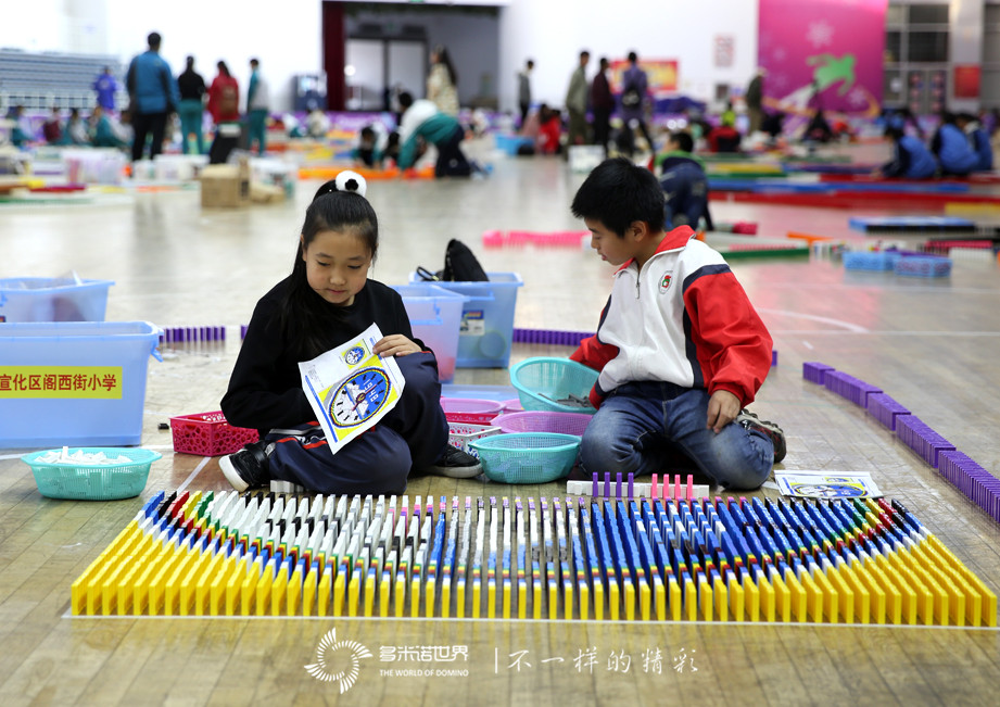 两地青少年在多米诺世界专业老师的系统培训及指导下,掌握了骨牌的码放技巧,全面细致地了解冬奥会的历史及相关知识,完成了多米诺方案设计。队员们通过共同参与这一活动,加强了京张两地青少年的交流和学习,也对冬奥会有了更深刻的理解和认识。10月28日一早,所有参赛队齐聚北京,在北京市昌平体育馆正式开赛,历时48小时,在10月29日晚最终完成了29万余枚骨牌的摆放。