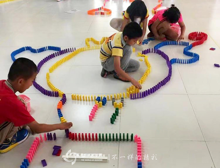 8-11岁的少年朋友参加创意大挑战的比赛项目。本次的比赛主题是:各族儿童庆六一,每支参赛队都要创意码放一幅与比赛战,主题相关的多米诺图案。虽然都是第一次参加多米诺比赛,却并没有紧张与胆怯,而是将心中最美的画面,用五颜六色的骨牌堆砌展现出来。一幅幅大相径庭的多米诺画卷,同样述说着各族儿童心中对于六一的美好憧憬。