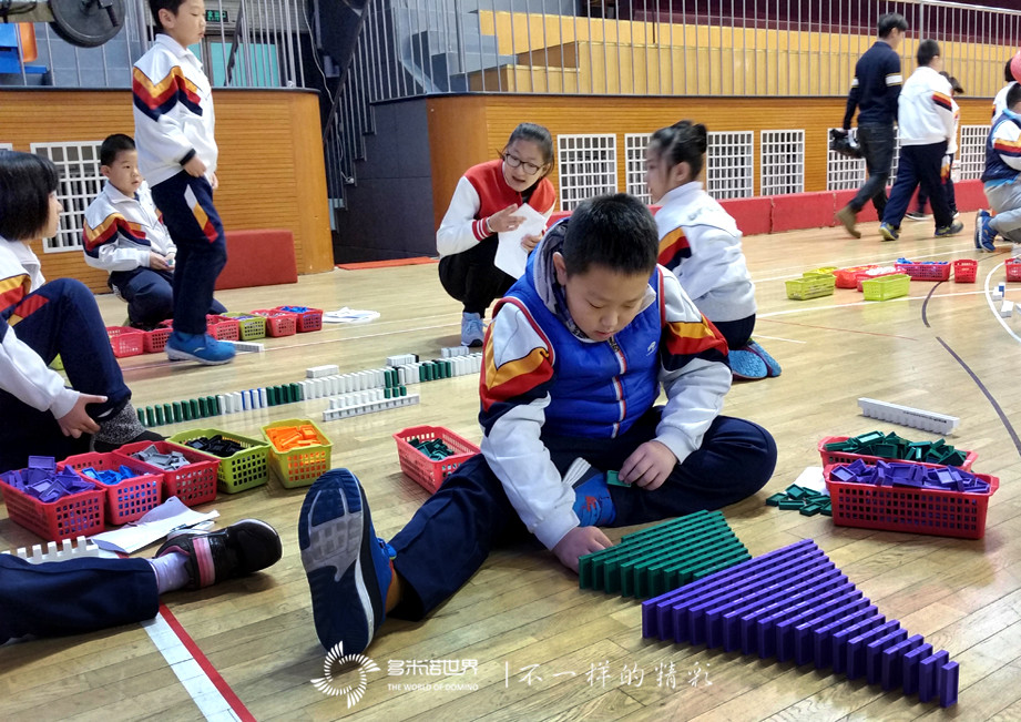 11月19日、20日,120余名同学在带队老师的带领下,来到一中体育馆,开始进行多米诺展演的骨牌摆放。参加骨牌摆放的同学多是小学生,甚至还有三年级的小同学;虽然雨雪天气加剧了严冬的寒冷;但大家并没有被困难吓倒,而是准时来到活动现场,认真完成自己的任务。