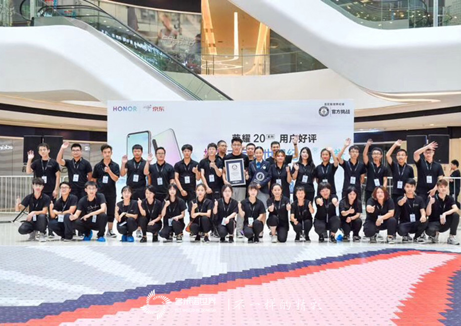 2019年8月11日,北京朝阳区银河SOHO D座中庭,历时8小时,随着现场花粉手中最后一块带有荣耀总裁赵明对用户感谢的贺卡的落地,一幅面积达161.85平米的巨型贺卡拼图最终成形。吉尼斯世界纪录官方现场认证并宣布,荣耀x京东联合百万荣耀20系列用户好评挑战吉尼斯世界纪录?荣誉成功,共同创造了“世界最大贺卡拼图”新纪录。